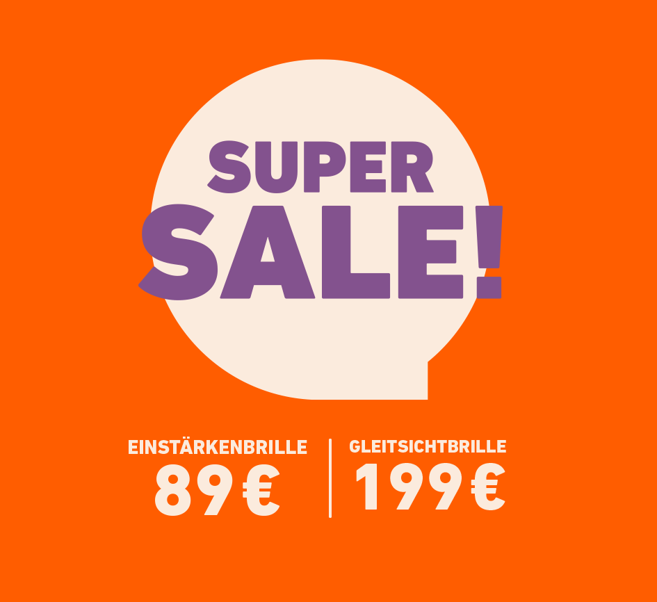 Dann sei schnell und sichere dir deine Einstärkenbrille im Super Sale für nur 89 € – nur auf ausgewählte Fassungen und solange der Vorrat reicht